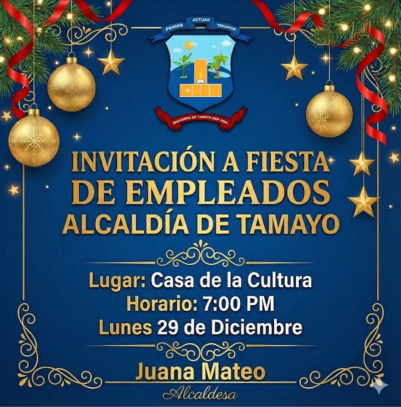 La Alcaldía Municipal de Tamayo celebrara este lunes 29 a partir de la 7:00 pm su fiesta de fin de año, junto a todos sus empleados y colaboradores.