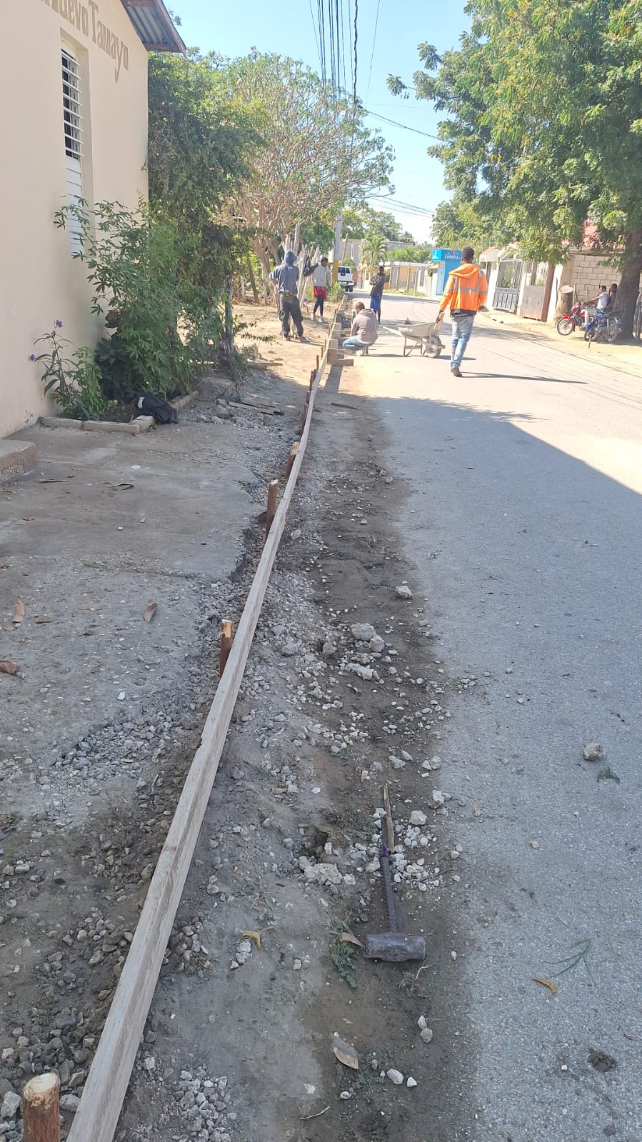 TAMAYO, Bahoruco. -El Ayuntamiento del municipio de Tamayo dio inicio esta miércoles 18 de febrero los trabajos de construcción de aceras y contenes en el sector Hato Nuevo.