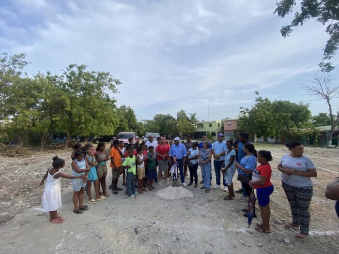 Tamayo/Bahoruco: La tarde de este viernes 23 de junio, el alcalde Municipal Lic. Luis Milcíades Montes de Oca y el concejo de regidores, realizaron el primer palazo para la construcción de una cancha deportiva en el sector Villa Liberación de este municipio.