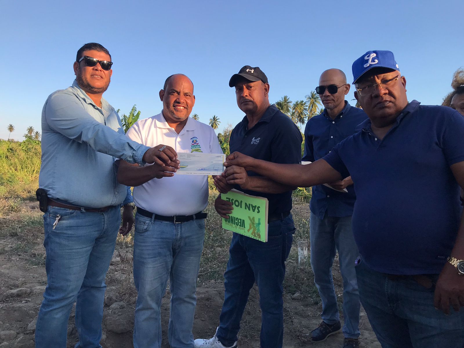 Tamayo/ Bahoruco: El alcalde municipal Licenciado Luis Milciades Montes de Oca, junto a integrantes del consejo de regidores hizo entrega de un cheque de 300 mil pesos para la compra de un terreno, donde será construida la cancha del sector San José (La Cuaba) en Tamayo.