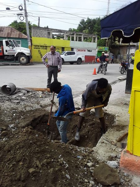 Tamayo/Bahoruco: La mañana de este jueves seis de Julio, la alcaldía inició la construcción de los registros que serán conectados con los pozos filtrantes que se construyen actualmente en la Avenida Libertad.