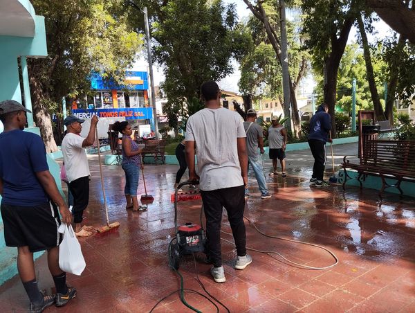 Desde las 6-00 de la mañana, Montes De Oca junto a un equipo de hombres y mujeres limpiaron todo el entorno del parque Municipal.