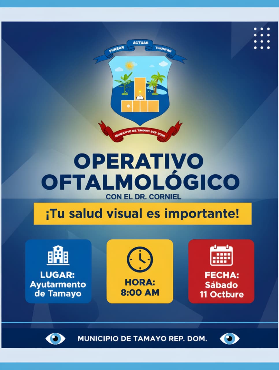 Juana Mateo Alcaldesa, contribuyendo con la salud visual de sus munícipes, no te pierdas este importante operativo oftalmológico, en el salón del ayuntamiento municipal.
