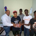 Alcalde hace entrega de una bola de basquetbol a jóvenes del sector Hato Nuevo