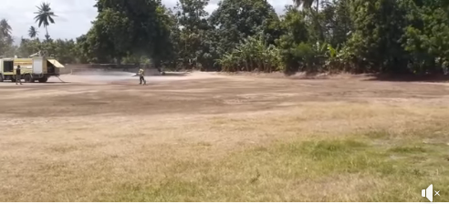 Esta tarde los miembros del Cuerpo de Bomberos de Tamayo creando las condiciones para la realización de un importante encuentro deportivo entre el equipo de Softboll Los Élites Team y el visitante equipo del Municipio de Cabral.
