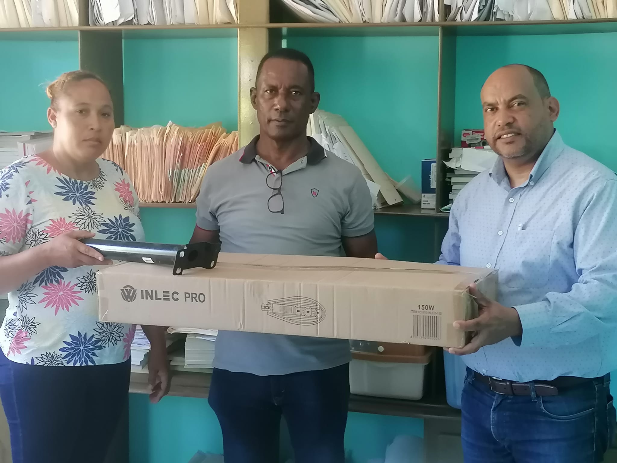 El Alcalde Municipal Lic. Luis M. Montes De Oca recibe recibió en su despacho al encargado de la junta de regante Stepam Díaz (Sao) así como a la encargada administrativa Licenciada Praulia Feliz Reyes, quienes hicieron entrega de tan importante donación.