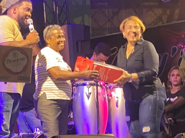 La alcaldesa Juana Mateo hizo entrega de varios regales a las mujeres que fueron agraciadas con los premios.