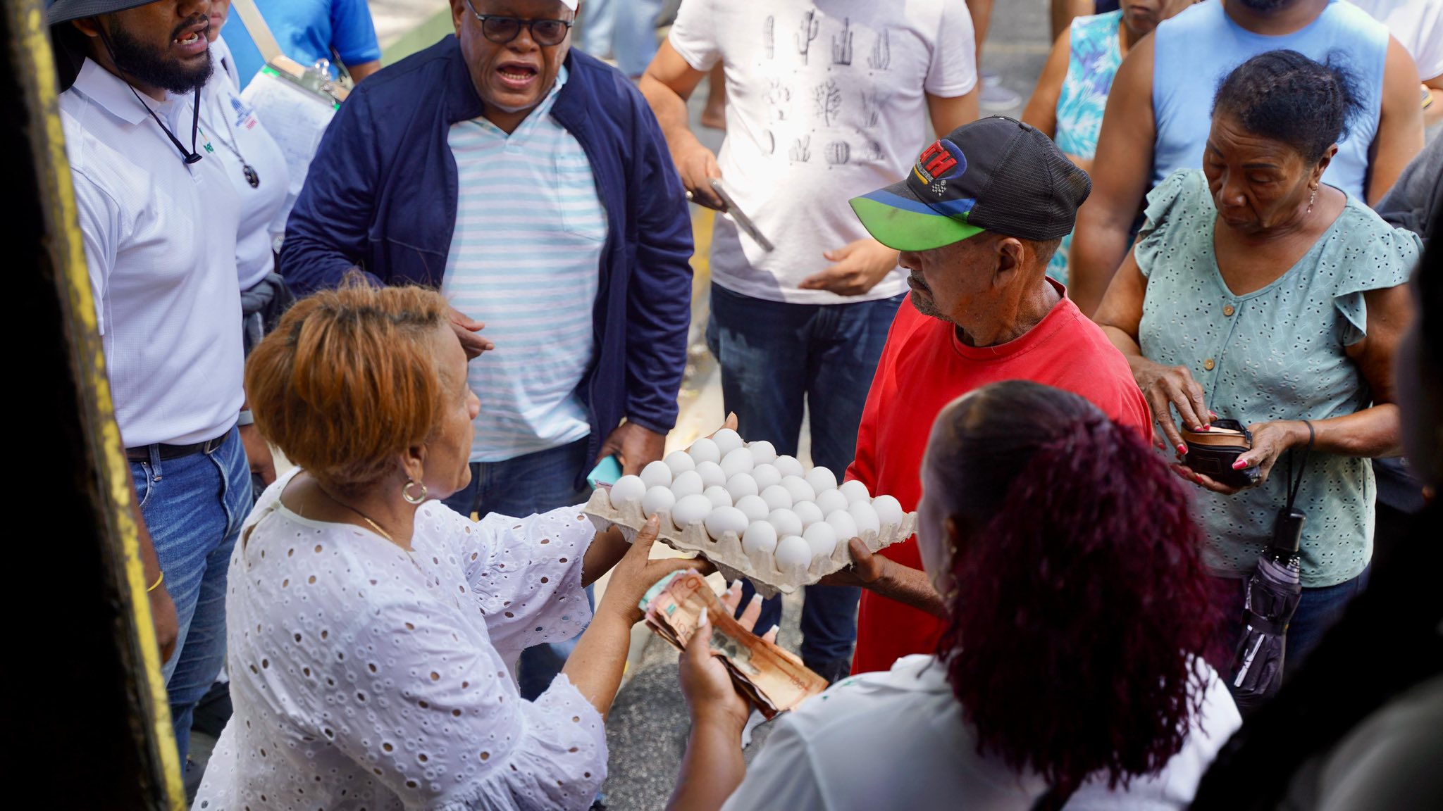 El operativo permitió que amas de casa, jóvenes y envejecientes pudieran acceder a productos esenciales como pollo, carne de cerdo, embutidos, huevos, arroz, habichuelas, plátanos y guineos verdes, entre otros.