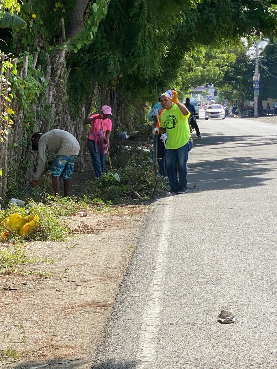 El operativo de limpieza que empezó en el puente a la entrada de la comunidad el pasado 30 de abril, continúo en la calle principal del sector villa liberación y este lunes sigue en la salida hacia Neyba frente al cementerio municipal.