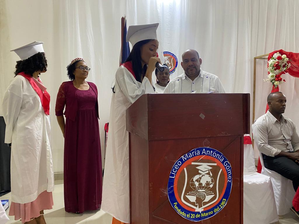 La promoción 2022, del liceo María Antonia Gómez graduó 43 nuevos bachilleres, durante el acto también fueron reconocidos, el director de dicho centro Francisco del Rosario Sánchez, la Licda Yohanny Medina como la Reyna de la graduación, así como a profesores y estudiantes meritorios.