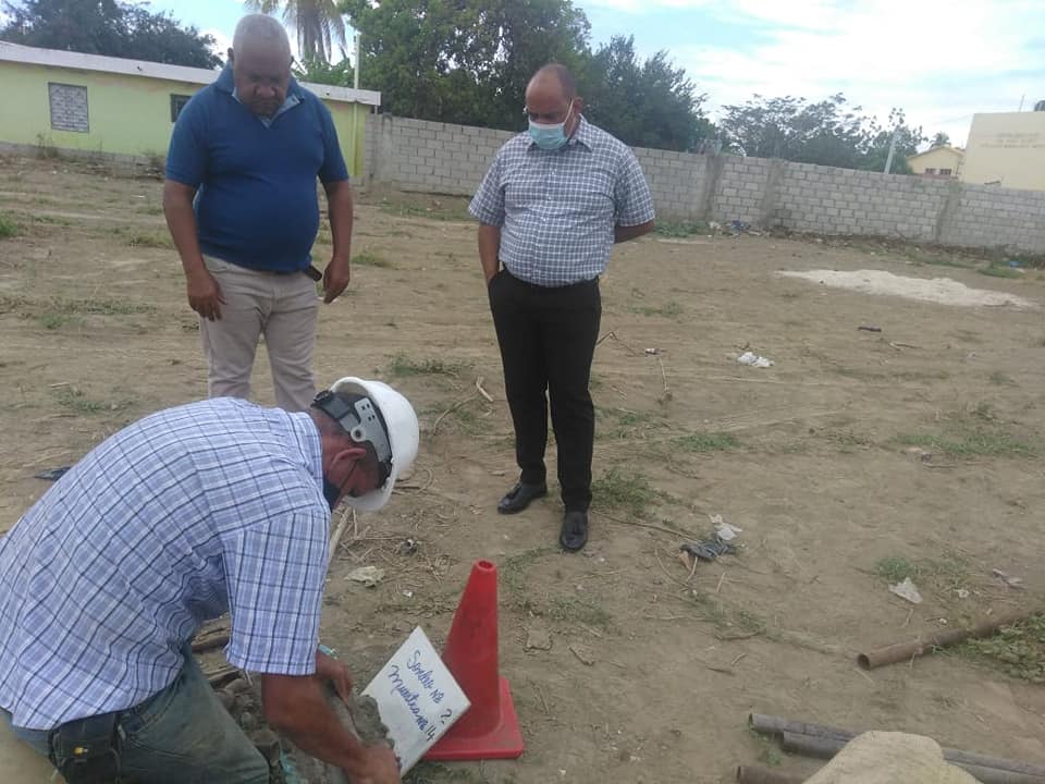 A las 8:15 AM, los técnicos instalaron su perforadora en presencia del alcalde Lic. Luis Milciadin Montes De Oca, y el regidor Nayi Batista, para extraer varias capas del terreno, para los estudios de suelos antes de iniciar la construcción de la obra.